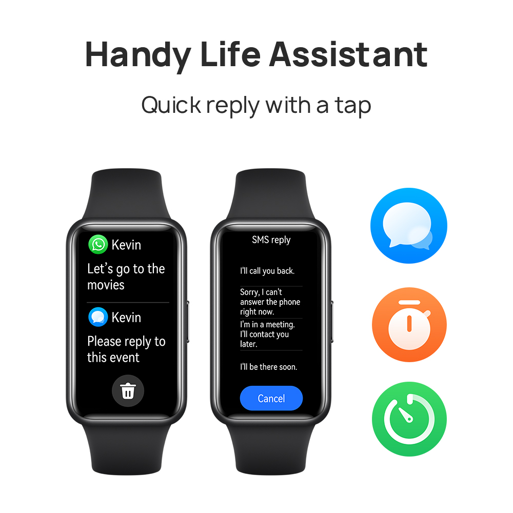 【Handy life assistant】: HUAWEI Band 7 keeps you plugged in to your life, View incoming calls and messages, quick reply of messages, get weather updates, control your music, plus take photos through your phone’s camera, all from the comfort of your own wrist.