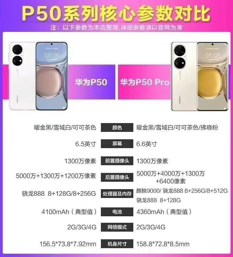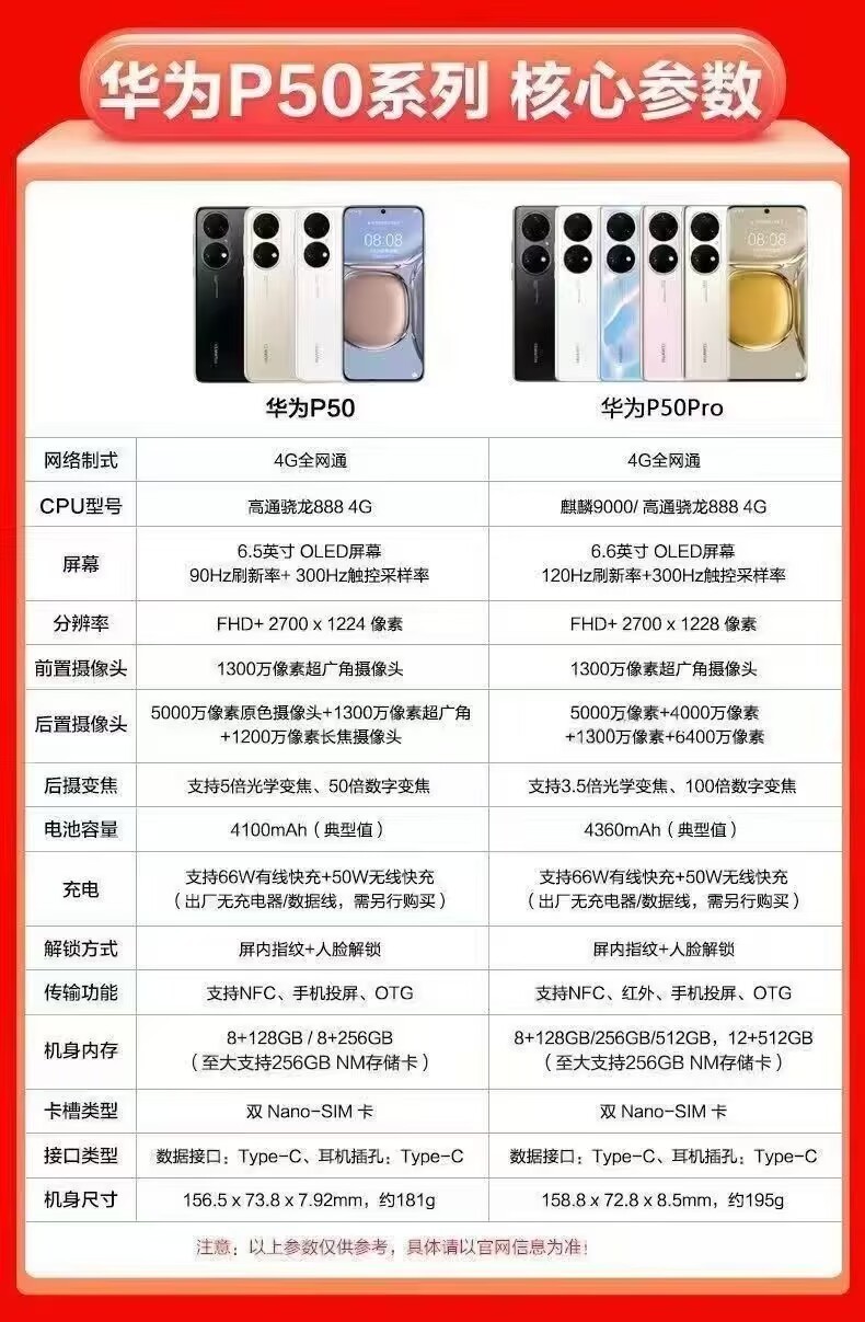 Huawei Huawei P50 pro flagship dual-ring camera smart HarmonyOS Kirin 9000 processor mobile phone.