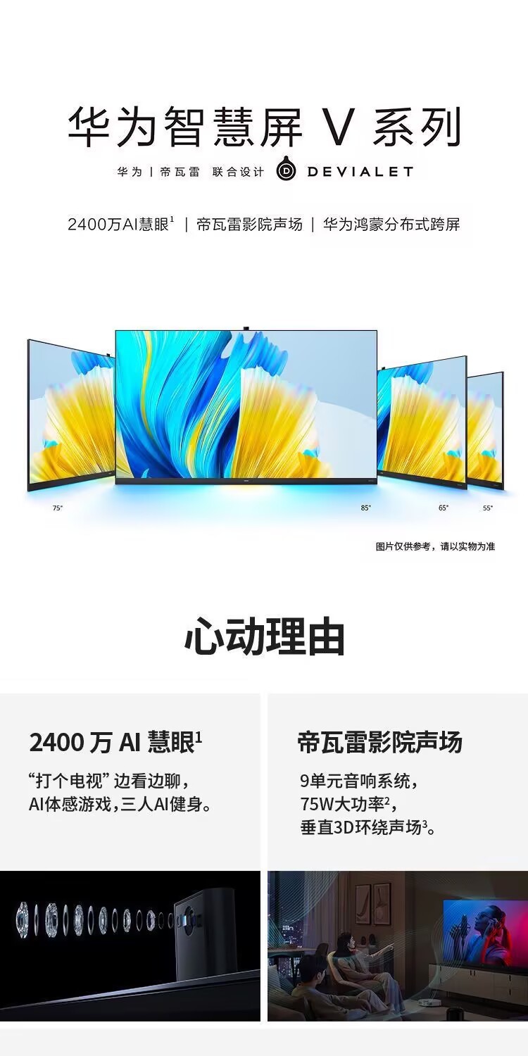 Huawei Smart Screen V75 Second Generation 75-inch 4K Full Screen AI Camera Super Desktop TV HD75THAA
