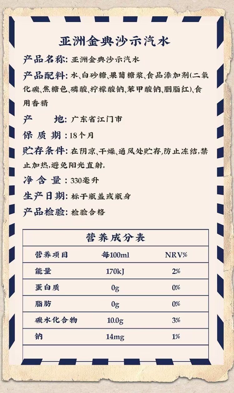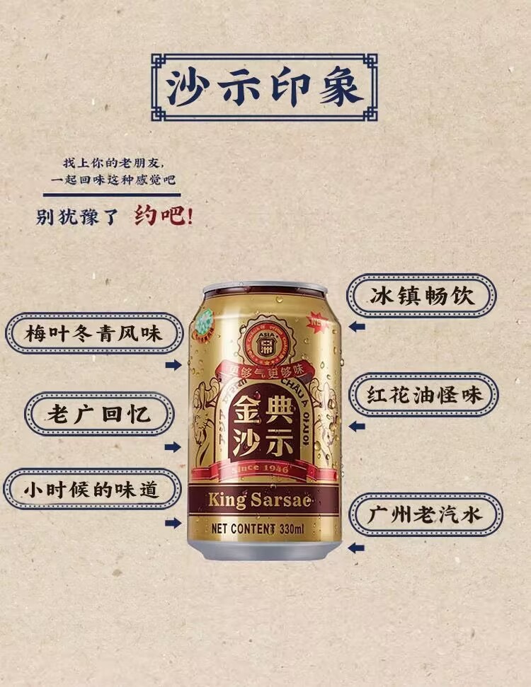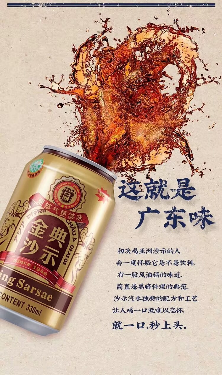 Jindian Shashi soda carbonated drink 330ml*24 canned root beer Guangzhou time-honored brand