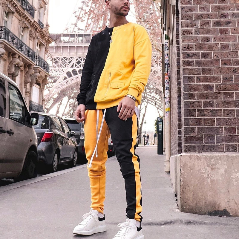 Item Wholesale Men street wear Tracksuit contrast color Sweatshirt Jogging Sweatsuit 2pcs set